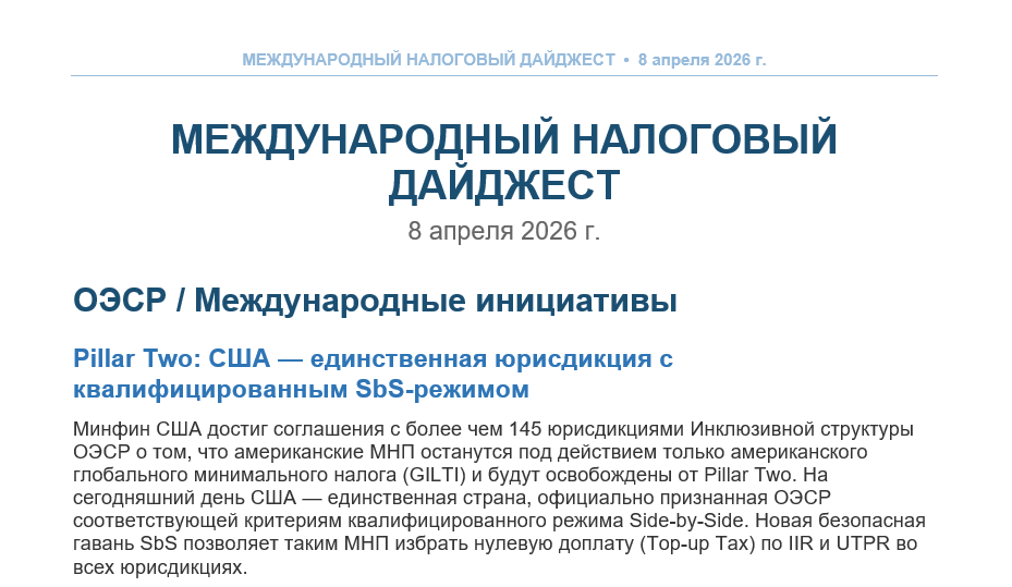 📄 Нажмите, чтобы прочитать: Международный налоговый дайджест